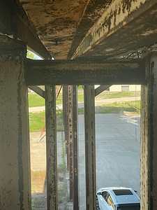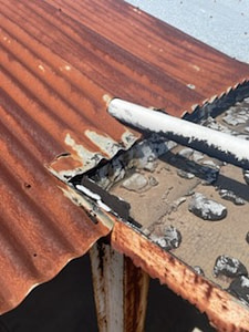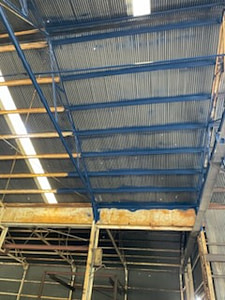 Above: Before – rusted roof beams prior to resheeting.