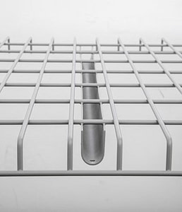 Wire decking is a component we sell with our pallet rack. Shelving Concepts provides a waterfall front wire deck made with a powder coated steel mesh with U channels to provide the most capacity possible for the requested size. The U channel will fit snuggly into your crossbeam’s step down.